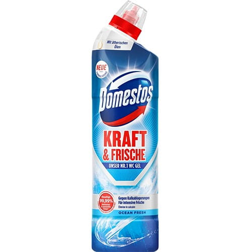 Środek czyszczący firmy Domestos nadaje morski zapach i wnosi intensywną świeżość i czystość do każdej toalety. Zapewnia higieniczną i długotrwałą czystość oraz sprawia, że toaleta lśni.